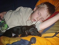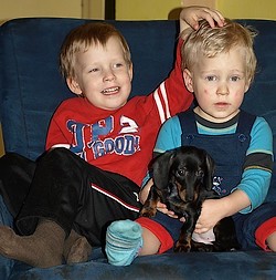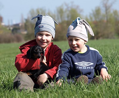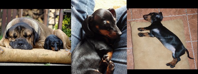 V lednu 2009 jsme si od pana Navrátila z Chovatelské stanice Z Dolního konce přivezli maličkou Kirbinku. Měli jsme strach, aby ji naši dva raubíři (Matýsek 5 let a Adámek 3 roky) nerozmačkali, ale dopadlo to dobře. První den sice trošičku smutněla, ale vše zachránil svetr od nové paničky, do kterého se mohla zachumlat. Kluky si hned zamilovala a jak se k nim mohla někam zavrtat do pelechu, byla spokojená.
