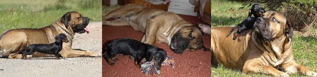 Největší strach jsme měli z Garpíka (Cane Corso), kterého má ségra. Přece jenom je to 60 kg živé váhy. Ale Kirbi si ho hned omotala kolem tlapky, tak nebylo co řešit. Garpík vždy lehnul aby na něj došáhla a hezky si spolu hráli. Kirbi mu teda vždy všechny hračky ukradla, ale on je džentlmen, tak se nechal.